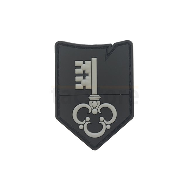 Cet écusson tactique Pitchfork noir OW présente des dimensions de 37 x 45 mm avec un dos en velcro.