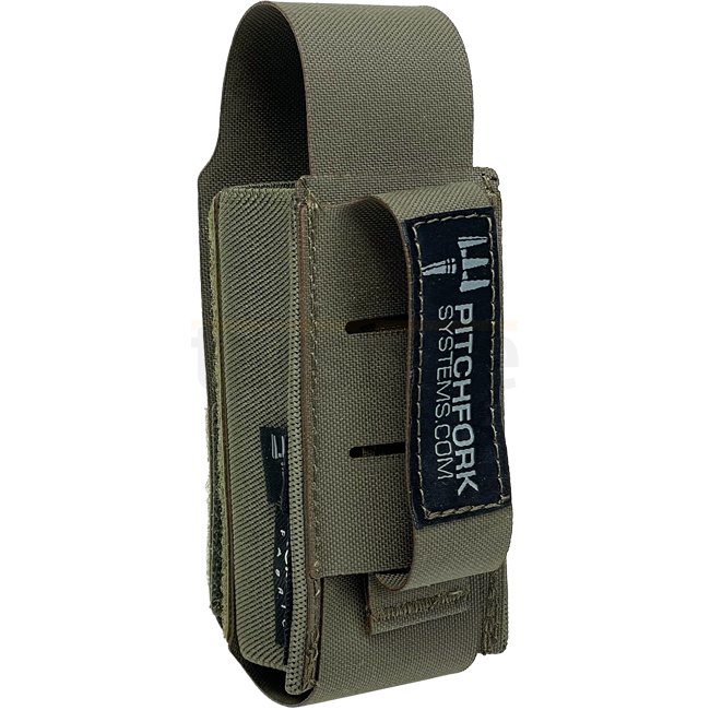 Étui Pitchfork TQ fermé en vert Ranger. Rabat adaptable pour divers garrots. Comporte un morceau de Velcro de 50 x 50 mm pour les patches. Fabriqué en Cordura 500D Nylon & Laminate découpé au laser. Parfait pour les activités en plein air.