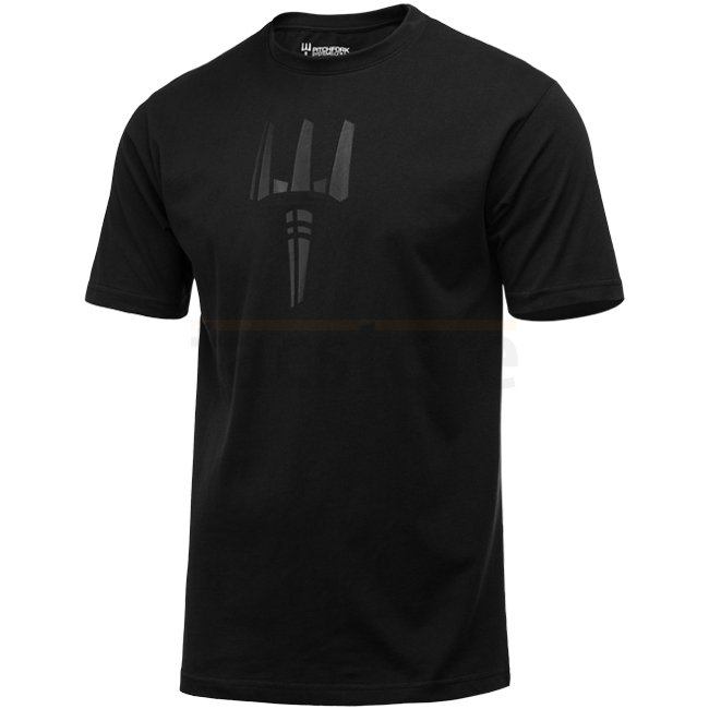 Restez élégant et confortable avec notre T-shirt imprimé Trident Fourche en Noir. Coupe semi-ajustée, mélange de coton-polyester 50/30, design fonctionnel. Grand trident à hauteur de poitrine, petit trident à l'arrière. Coupe parfaite pour un confort opti