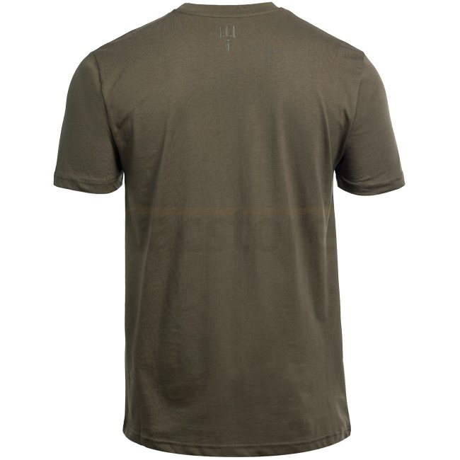 T-shirt Trident Fourche en vert ranger taille XL. Mélange de coton-polyester de poids moyen, grand trident sur la poitrine, petit trident au niveau du col arrière. Taille européenne, col et manches ajustés.