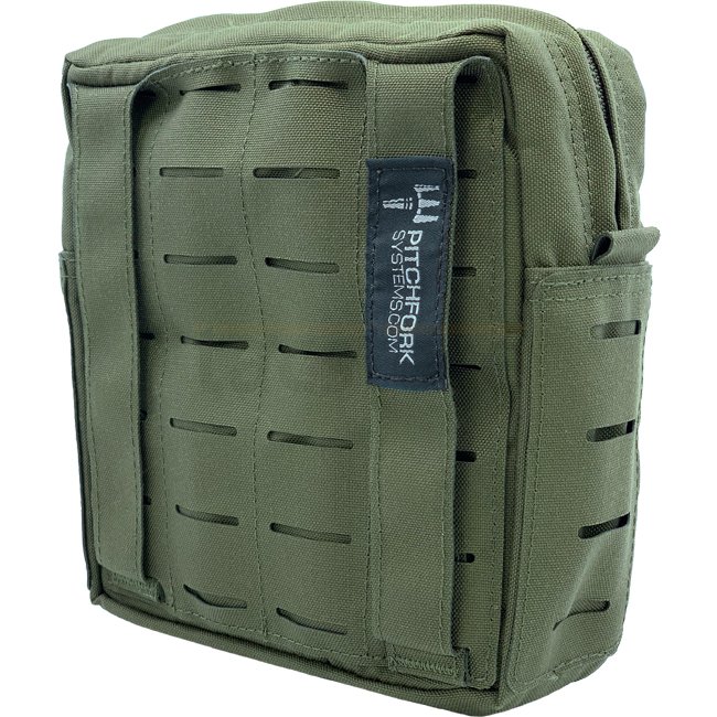 Sacoche Utilitaire Verticale Pitchfork Medium - Ranger Vert : système MOLLE, bandes velcro, boucles élastiques, poche en maille, fermeture éclair YKK bidirectionnelle, conçue pour des accessoires ou une trousse de premiers secours.