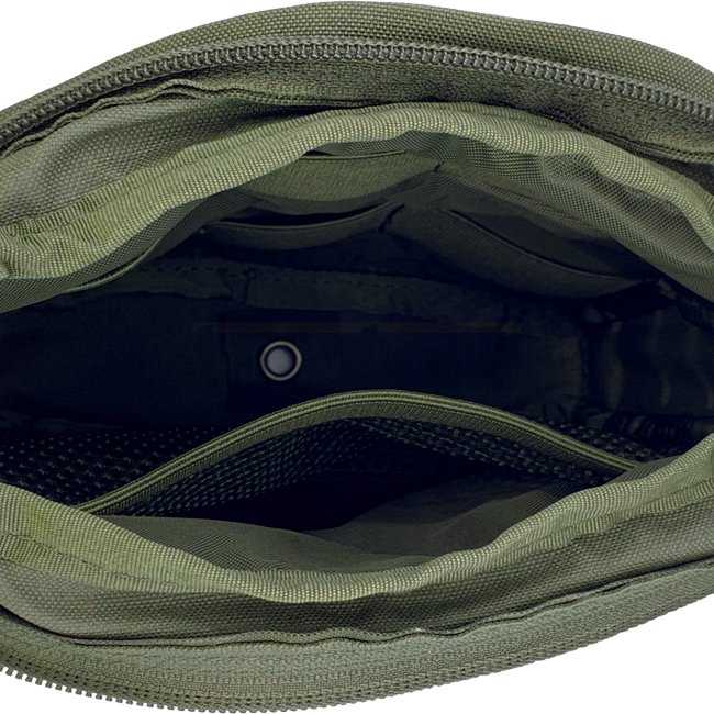 La pochette utilitaire verticale moyenne est livrée avec une surface système MOLLE ainsi que deux bandes velcro pour les patches. À l'intérieur, deux rangées de boucles élastiques et une poche en filet de l'autre. Cela peut stocker en toute sécurité un tas d'accessoires. Alternativement, la pochette peut également être utilisée pour une trousse de secours personnelle.