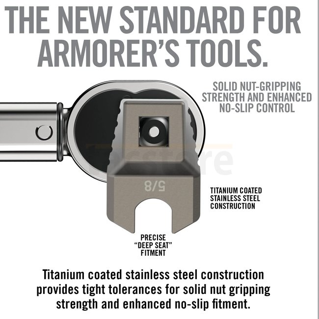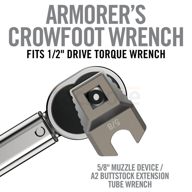 Le Real Avid Master-Fit Armorer's Crowfoot de 5/8 pouce pour dispositif de bouche / clé pour tube d'extension de crosse A2 est un outil spécialement conçu pour s'adapter parfaitement aux extensions de récepteur de crosse fixe A2 et aux dispositifs de bouc