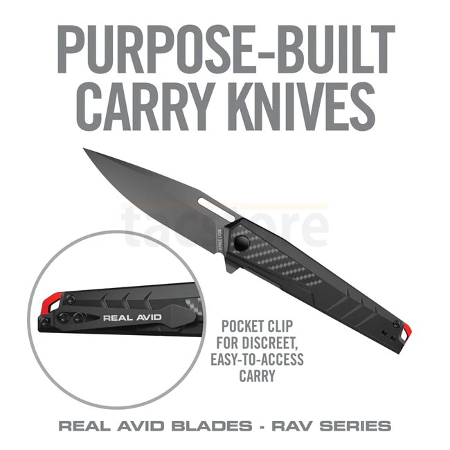 Le RAV-5 est doté d’une lame drop-point de 8,6 cm en acier 8Cr13MoV avec revêtement titane pour une meilleure résistance à la corrosion et une longue durée. Sa poignée en aluminium et fibre de carbone allie solidité et légèreté. Conçu pour une prise en main rapide et un verrouillage sûr, il intègre un verrou liner lock, une ouverture assistée par ressort et un clip discret à port profond.