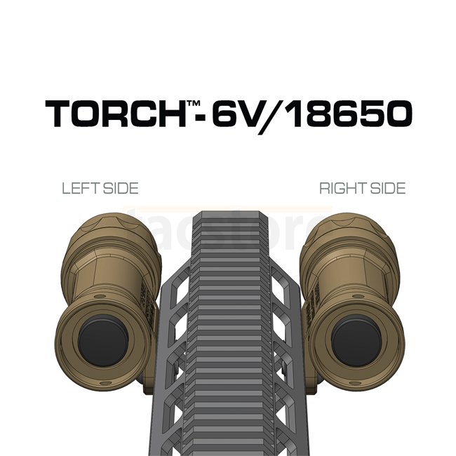 Conçu pour les configurations avec laser, le TORCH 6V/18650 utilise une interface M-LOK monobloc qui place la lampe au plus près tout en offrant une rigidité maximale. Optimisé pour ATPIAL/PEQ 15 et NGAL, il maintient le garde-main épuré et dégagé.