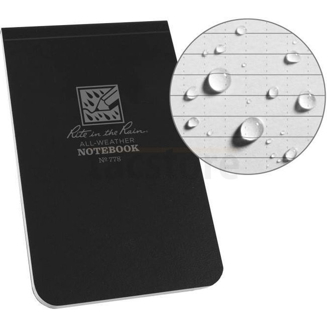Carnet Field-Flex Rite in the Rain : carnet noir durable de 3,25" x 5,25" parfait pour une utilisation en extérieur. Il présente une reliure solide, des couvertures flexibles et des outils imprimés utiles. Fabriqué aux États-Unis.