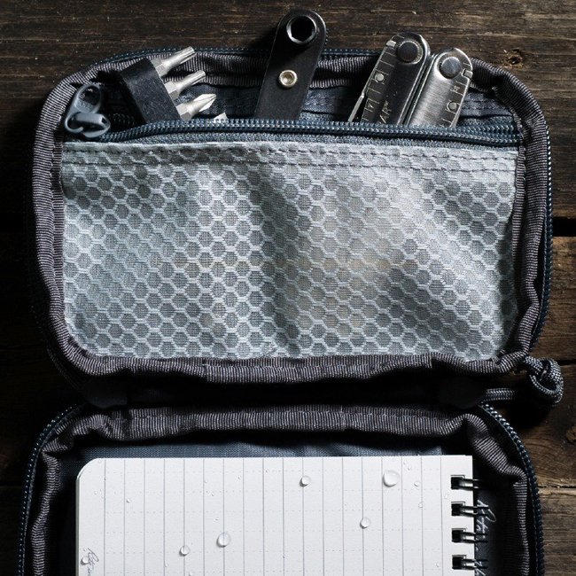 • Les pochettes de rangement translucides facilitent l'organisation de vos petits essentiels de terrain: USB Stick, petit outil, lampe de poche, et plus encore.