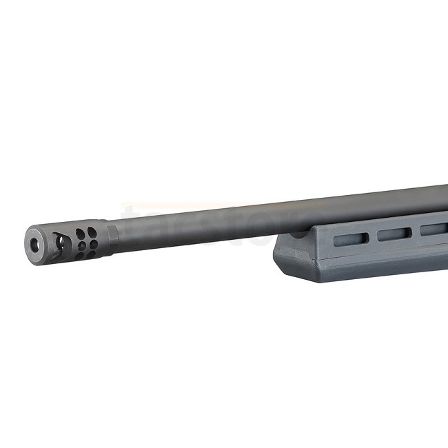 Le canon lourd de 50.8 cm (.850" à la bouche) est doté d'un frein de bouche hybride Ruger Precision® Rifle pour réduire efficacement le recul tout en minimisant le bruit et le souffle sur les côtés du tireur.