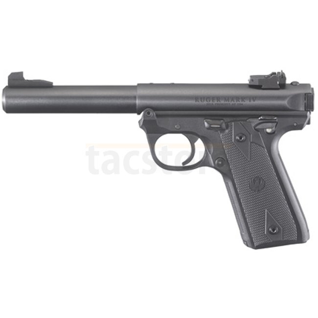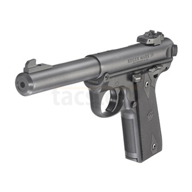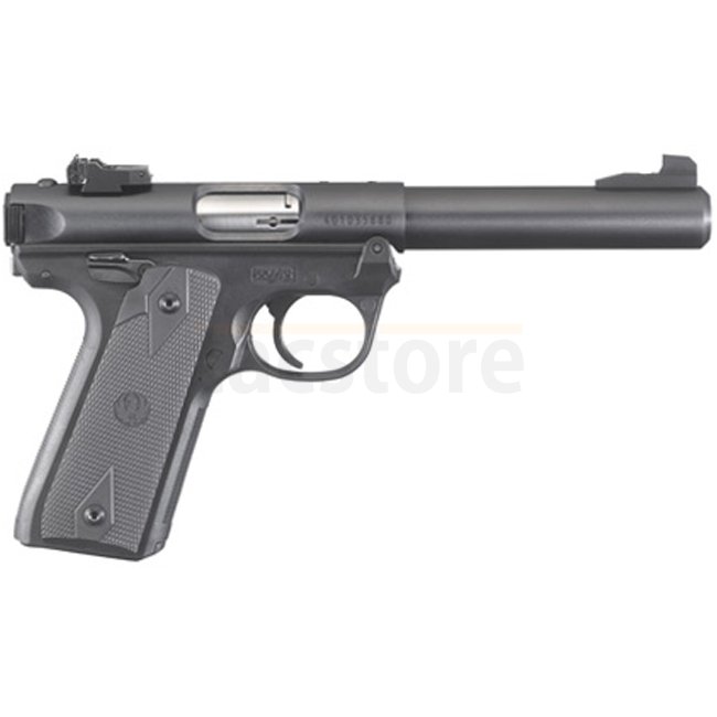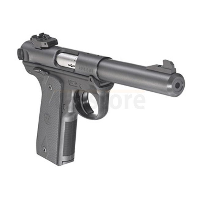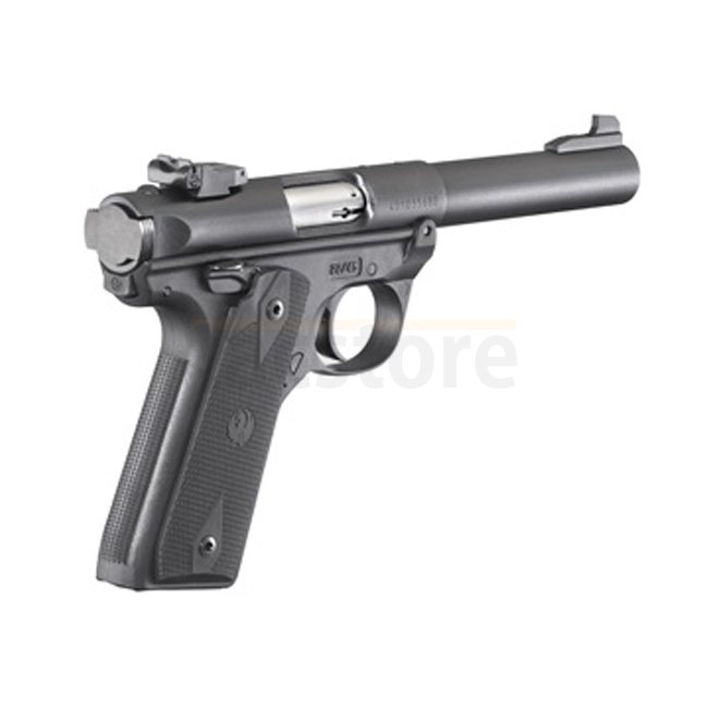 Le Ruger Mark IV 22/45 est un pistolet moderne en .22 LR offrant une précision et une fiabilité exceptionnelles. Son canon lourd martelé à froid garantit une excellente longévité et régularité. Son verrou cylindrique interne permet un alignement constant entre la visée et le canon. Le cadre de poignée en polymère ergonomique intègre une face avant striée et une face arrière quadrillée pour une prise ferme.