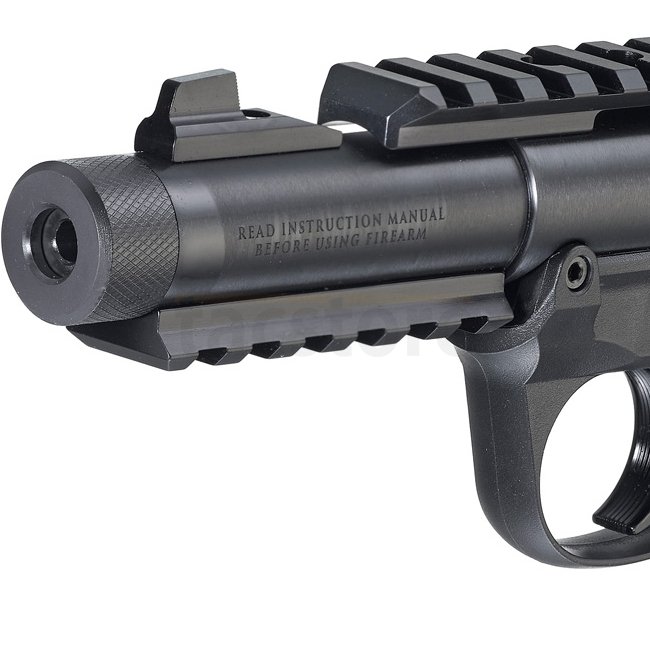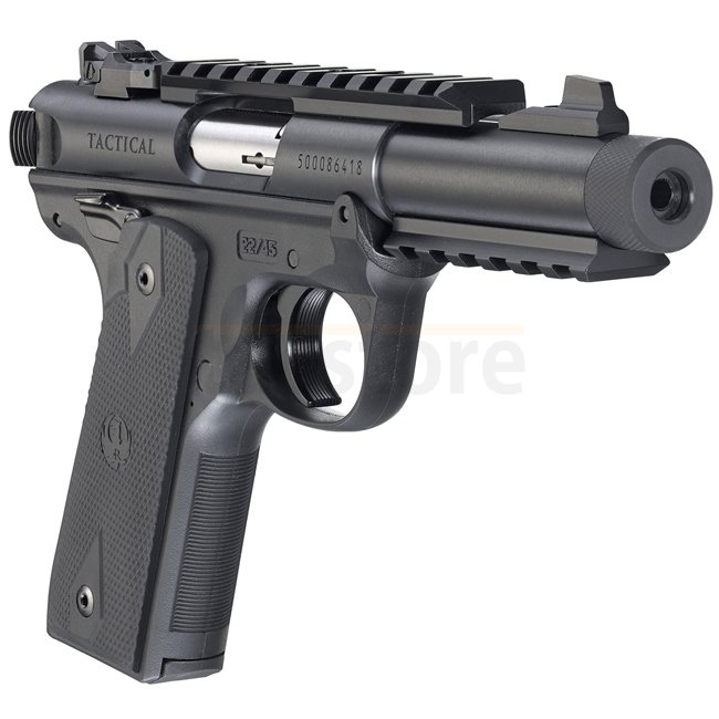 Le Ruger Mark IV 22/45 est un pistolet en .22 LR conçu pour offrir précision, fiabilité et modularité. Son canon martelé à froid garantit une excellente durabilité et une précision constante. Le verrou cylindrique interne assure un alignement permanent entre le canon et la visée. Le boîtier en acier allié et le canon fileté (pas 1/2-28) permettent l’utilisation de Mündungsaufsätze compatibles.