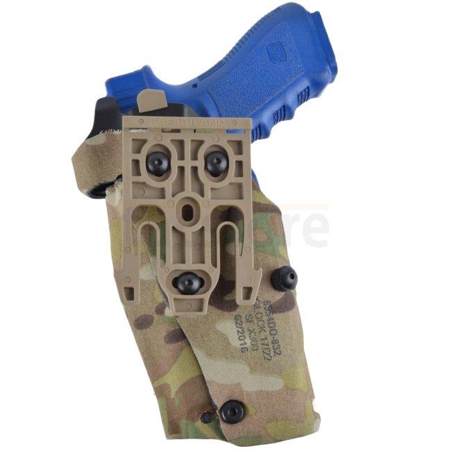 Étui avec fourche QLS MS19 adapté pour Glock 17/22 MOS & TacLight MS19. Compatible avec Streamlight TLR-1/TLR-1 HL, Surefire X200/X300/X300U, Insight Technology M3, Inforce APL, Trijicon RMR, MOS Burris Fast Fire. Remarque : Conçu pour être utilisé avec u