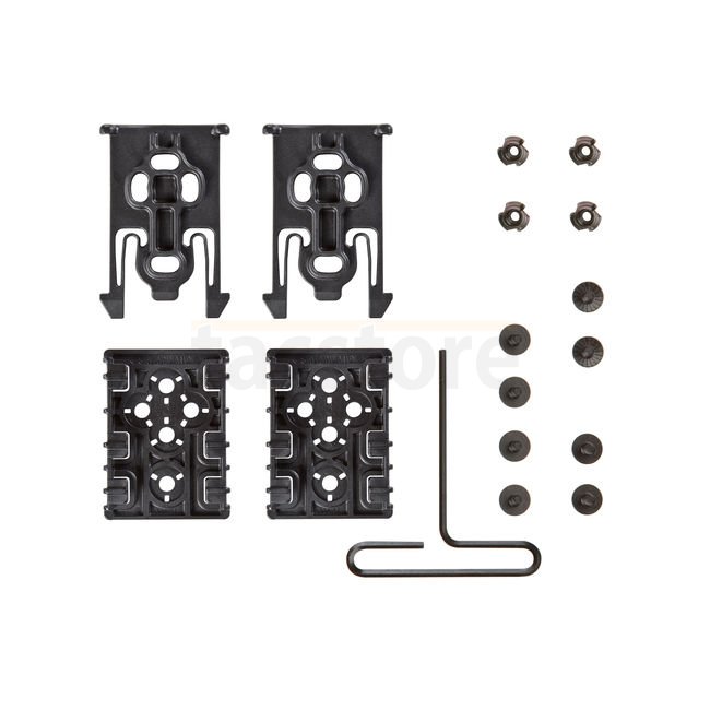 Améliorez votre configuration d'équipement avec le Kit de Système de Verrouillage d'Équipement Safariland en Feuillage. Le kit comprend 2x Fourches de Verrouillage ELS 34 et 2x Plaques de Réception ELS 35 pour une fixation sécurisée.