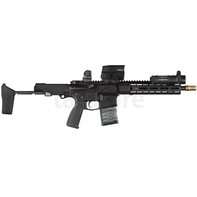 La HBPDW 9MM est une brace stabilisatrice style Honey Badger conçue pour les lowers AR-15. Design compact, léger, avec trois positions réglables pour un contrôle amélioré.