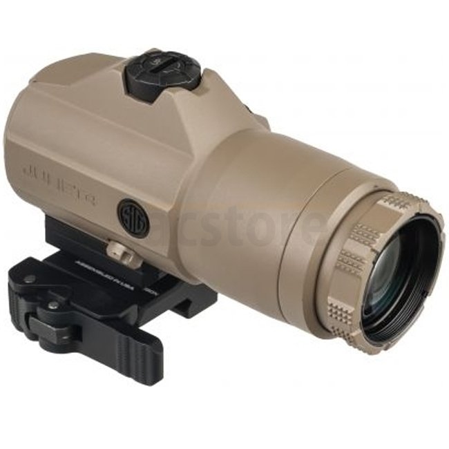 Le magnificateur Sig Sauer JULIET4 4x en Dark Earth offre une magnification de 4x avec un dioptre réglable, un montage rapide basculant sur le côté, et un boîtier robuste en aluminium de qualité aéronautique. Améliorez vos capacités d'acquisition de cible