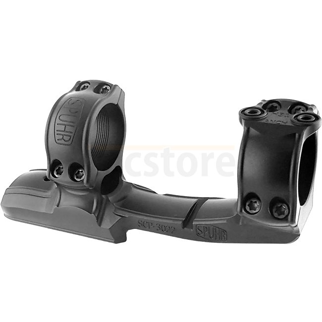 La Spuhr SCP-3022 est un montage de lunette de la série Hunting, conçu pour une utilisation sur des rails Picatinny. Elle dispose d'un anneau classique et d'un anneau d'interface, qui peut être tourné pour positionner les accessoires en position 12 heures ou 3 heures. Ce montage en porte-à-faux permet de positionner la lunette 70 mm (2,76 pouces) plus en avant que sur un montage non porte-à-faux.