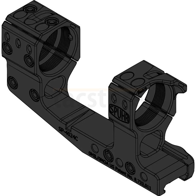 La Spuhr SP-4024C est une monture de lunette en porte-à-faux haute et étendue, conçue pour une utilisation sur des plateformes AR équipées d'illuminateurs montés sur le dessus du garde-main. Cette conception permet de monter la lunette 70 mm (2,76 pouces) plus en avant par rapport aux montures sans porte-à-faux, offrant ainsi une flexibilité accrue pour le dégagement oculaire et l'ajout d'accessoires.