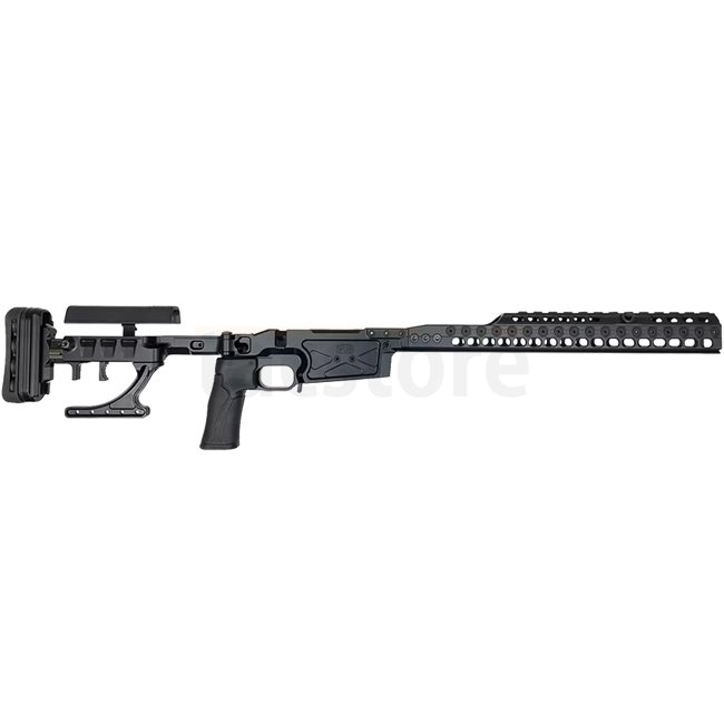 Le Spuhr CH000005 est un châssis modulaire de la série Spuhr® Ideal Chassis System™ (SICS™), conçu pour améliorer la précision en offrant un support rigide à l’action et au canon. Optimisé pour les actions Remington 700 chambrées en .338 Lapua Magnum (longueur CIP), ce châssis propose de nombreuses fonctionnalités adaptées aux tireurs exigeants.