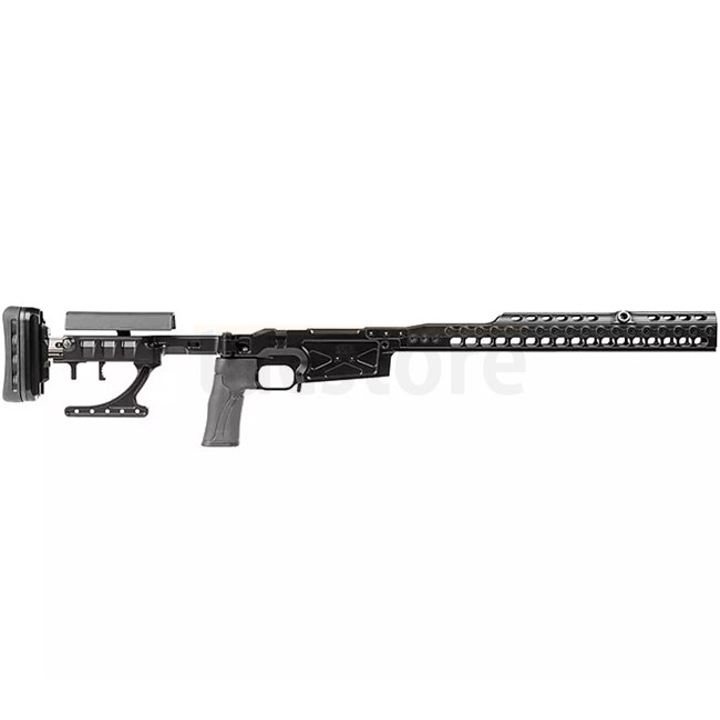 Le Spuhr CH000025 est un châssis modulaire de la série Spuhr® Ideal Chassis System™ (SICS™), conçu pour améliorer la précision en offrant un support rigide à l’action et au canon. Optimisé pour les actions Remington 700 en calibre .338 Lapua Magnum (longueur CIP), ce châssis propose de nombreuses fonctionnalités adaptées aux tireurs exigeants.