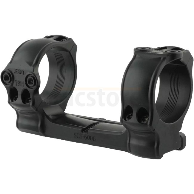 La Spuhr SCT-6006D est un montage de lunette de la série Hunting, conçu pour le fusil Tikka T3X, et également compatible avec les modèles SAKO TRG 22/42. Ce montage dispose de deux anneaux d'interface qui peuvent être tournés pour positionner l'interface ou l'accessoire en position 12 heures ou 3 heures.