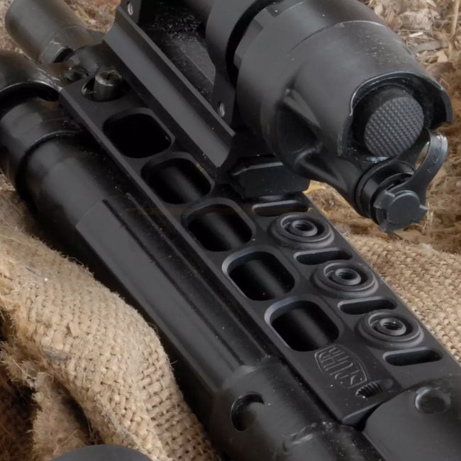 Le Spuhr R-301 est un garde-main en aluminium léger et profilé, conçu pour les MP5, HK53 et leurs clones. Usiné à partir d'un seul bloc d'alliage d'aluminium de la série 7000, il offre une durabilité accrue et un poids réduit par rapport au garde-main en plastique d'origine.