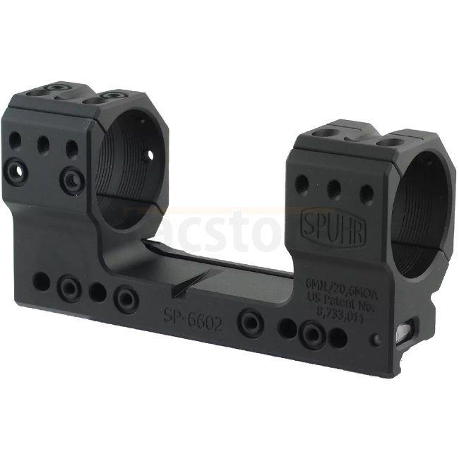La Spuhr SP-6601 est une monture monobloc de haute qualité conçue pour les fusils équipés de rails Picatinny conformes aux normes MIL-STD-1913 ou STANAG 4694. Elle est particulièrement adaptée aux fusils à verrou avec des rails Picatinny monoblocs. Cette monture est compatible avec des tubes de lunette de 36 mm et présente une inclinaison de 6 MIL (20,6 MOA), permettant des ajustements précis pour le tir longue distance. Avec une hauteur de 30 mm et une longueur de 128 mm, elle assure une grande polyvalence pour diverses configurations de tir. La monture pèse 247 g et inclut une cale de 10 degrés pour faciliter le nivellement lors de l’installation. Veuillez noter qu’elle n’est pas compatible avec la lunette Hensoldt ZF 3.5-26x56, le SAKO S20 ou les fusils équipés de rails en deux parties. De plus, à partir de l’automne 2023, les couvercles supérieurs arrière ne présenteront plus de rainures d’alignement.