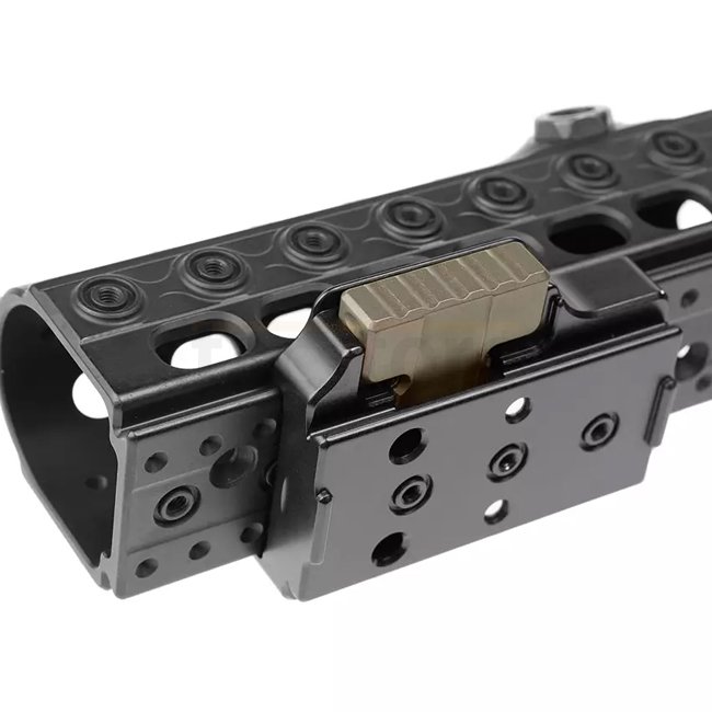 Le CA001 possède une base ARCA-Swiss compatible avec toute pince ARCA-Swiss standard. Il est spécifiquement conçu pour s'intégrer parfaitement avec le garde-main au motif ARCA-Swiss du SICS™, permettant aux utilisateurs d'ajuster rapidement la position de leur bipied ou trépied le long du châssis d'un simple appui sur un bouton. Veuillez noter que le CA001 est conçu pour le mécanisme de verrouillage du SICS™ et peut ne pas se fixer solidement sur des garde-mains ou plaques ARCA-Swiss d'autres marques sans adaptation.