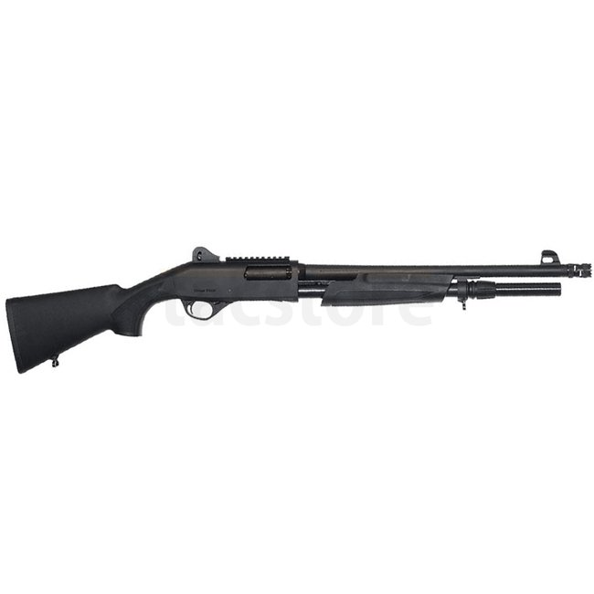 Le Stoeger P3000 Tactical Synthetic est un fusil a pompe solide en calibre 12/76, conçu pour un fonctionnement fiable et une installation aisée d'accessoires. Il est équipé d'un canon de 480 mm avec choke fixe de type breech, d'organes de visée Ghost‑Ring et d'un rail Picatinny pour optiques et accessoires. La capacité du magasin est de 7 coups.