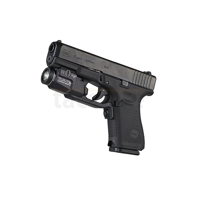 Compact et puissant éclairage LED Glock Streamlight TLR-7A avec télécommande tactique et finition noire élégante. Fournit une luminosité de 500 lumens. Nécessite une batterie CR123. Léger à seulement 70g.