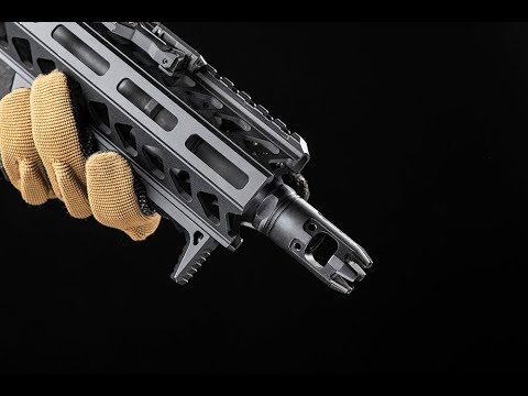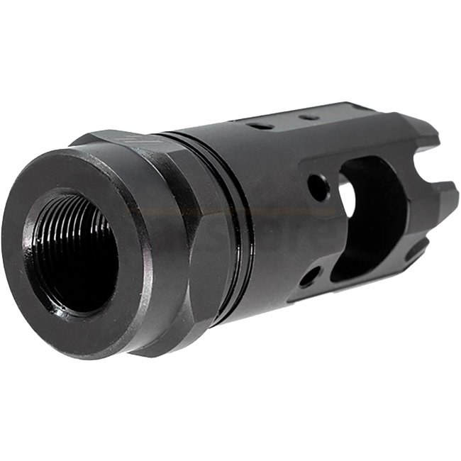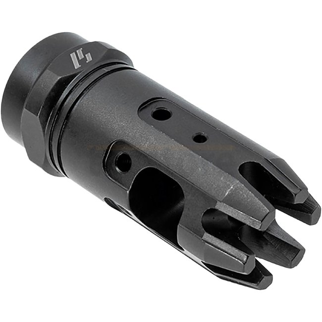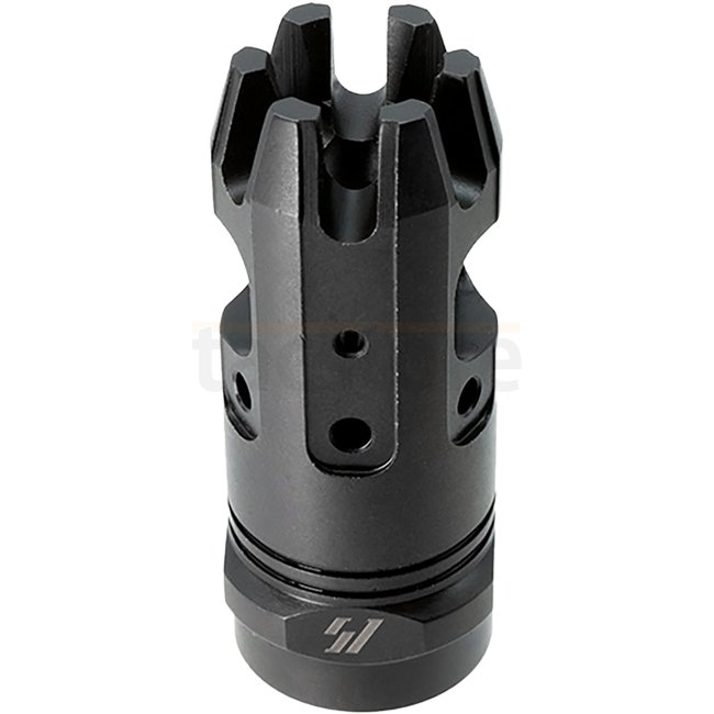 Réglé pour la réduction de recul, conception à 1 chambre pour cal .223/5.56, pointes de butée. Acier inoxydable usiné avec précision.