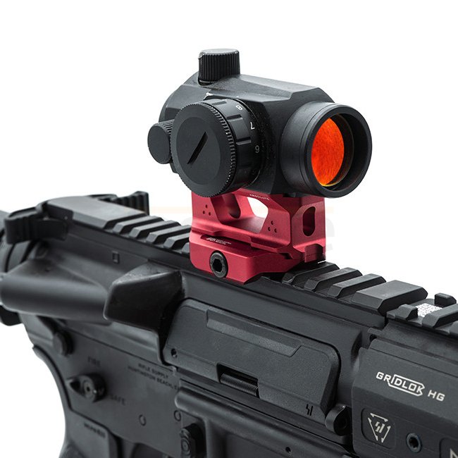 Montage rehaussé T1 de Strike Industries - Terre sombre, fabriqué en aluminium 6061-T6, 65g, Co-visée absolue ou inférieure à 1/3, empreinte Micro / Picatinny