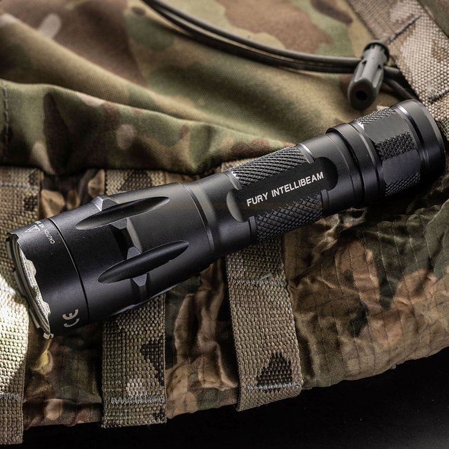 La SureFire FURY IntelliBeam est une lampe de poche polyvalente dotée d'une luminosité auto-ajustable et d'une capacité à double carburant, offrant un éclairage optimal pour tout environnement.