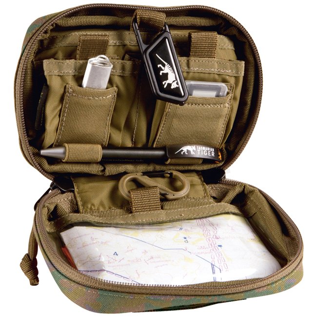 Tasmanian Tiger Admin Pouch - Multicam : Pochette administrative compacte fabriquée en matériau Cordura 500 durable. Dispose de divers compartiments, boucle de fixation pour lampes de poche, organisateur pour cartes mémoire, poches de rangement transparen