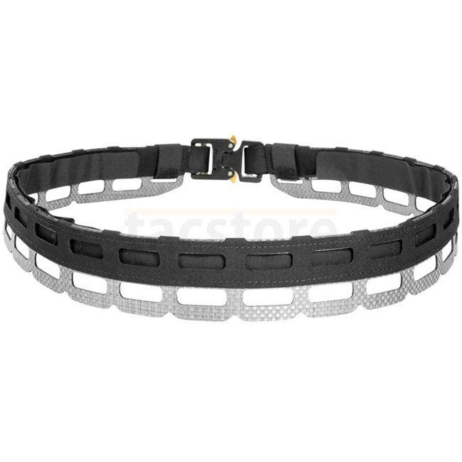 Six éléments MOLLE droits à l’arrière renforcent la stabilité. Réglable en longueur avec zone velcro couverte, la ceinture se porte seule ou comme ceinture extérieure avec une ceinture intérieure velcro. La configuration modulaire autorise des ajustements rapides en tir de proximité.