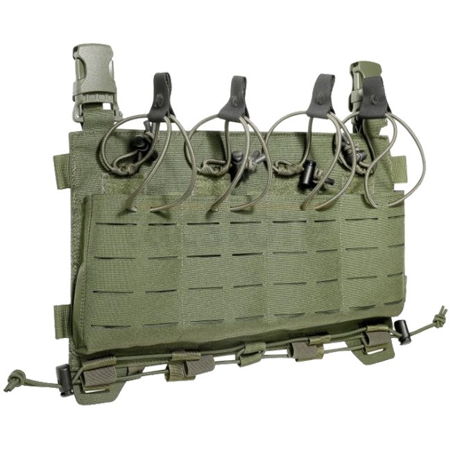 Panneau porte-chargeur Tasmanian Tiger LC M4 - Olive - L/XL : Panneau avant de remplacement découpé au laser avec 4 porte-chargeurs cousus en permanence pour différents types de fusils. Compatible avec TT Plate Carrier MK III et TT Plate Carrier LC. Compr