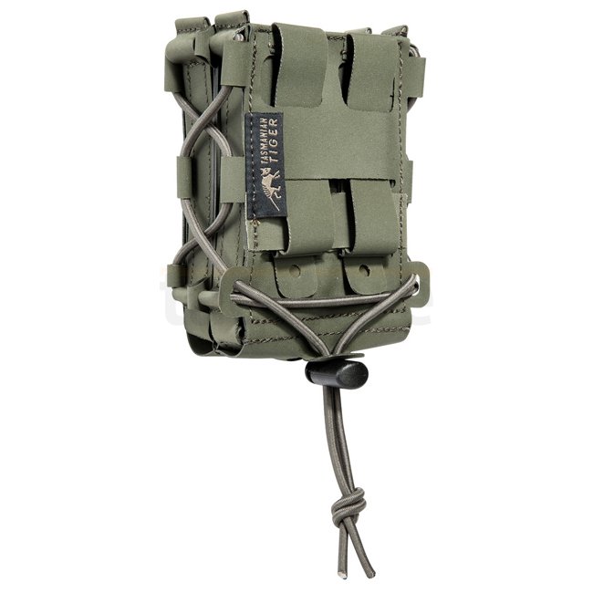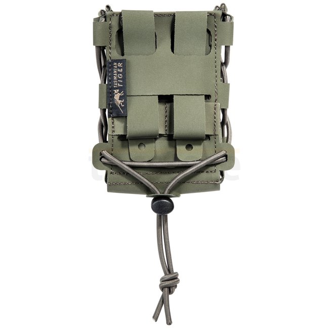 Poche double mag Tasmanian Tiger MCL Anfibia - Olive. Contient deux chargeurs de fusil, fabriquée en Nylon TPU 420D (étanche). Ne pèse que 105g et a des dimensions de 11 x 7,5 x 4 cm.