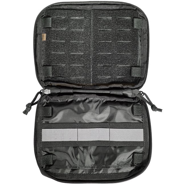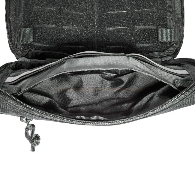Pochette zippée tactique MOLLE avec panneaux à boucles et à crochets, anneaux en D et divers compartiments pour couteaux, outils et équipements. Comprend un compartiment avant zippé, une poche secrète pour pièces de monnaie, une poche plate et une poche p