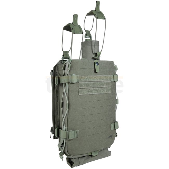 Une plaque de base renforcée accueille deux tubes à outils amovibles. Le compartiment principal se déploie intégralement et est dimensionné pour des coupe-barres jusqu’à 80 cm. Des boucles élastiques latérales retiennent des breach-pens ou petits outils. La glissière ZIP-MOLLE et les adaptateurs inclus permettent une fixation facile sur systèmes MOLLE classiques – renforçant la modularité pour une configuration mission à performance IRR.