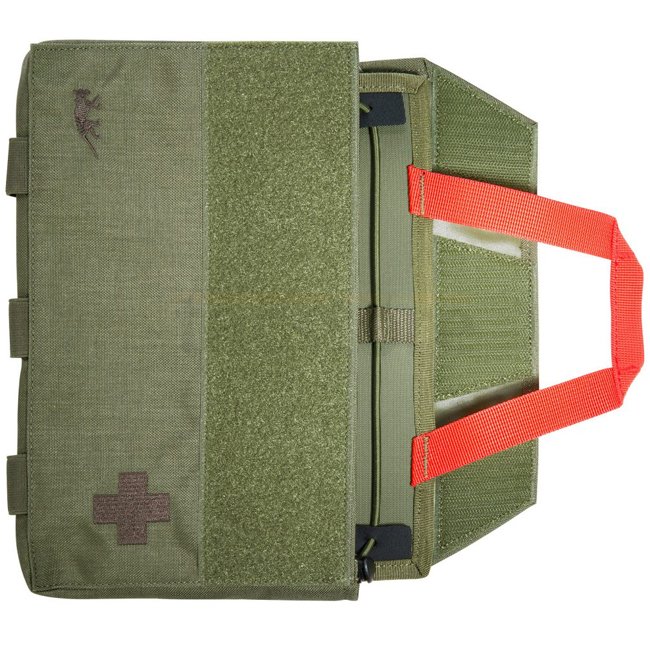 Pochette Tasmanian Tiger IFAK - Olive : Trousse de premiers secours avec système d'accès rapide. S'ouvre et se ferme avec un système auto-agrippant. Panneau amovible pour un chargement personnalisé. Peut également être utilisé avec des ceintures de 50mm.