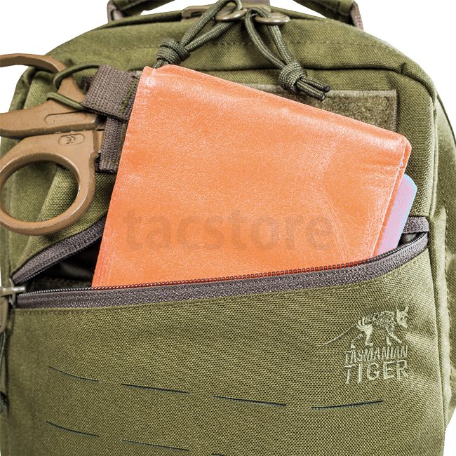 Sac d'assaut médical compact et polyvalent avec système MOLLE découpé au laser et bretelles détachables. Idéal pour les systèmes de porte-plaques. Comprend une poche intérieure, un sac pour ciseaux et des points d'attache pour équipement médical. Compatib