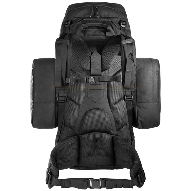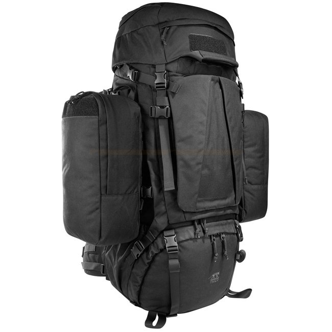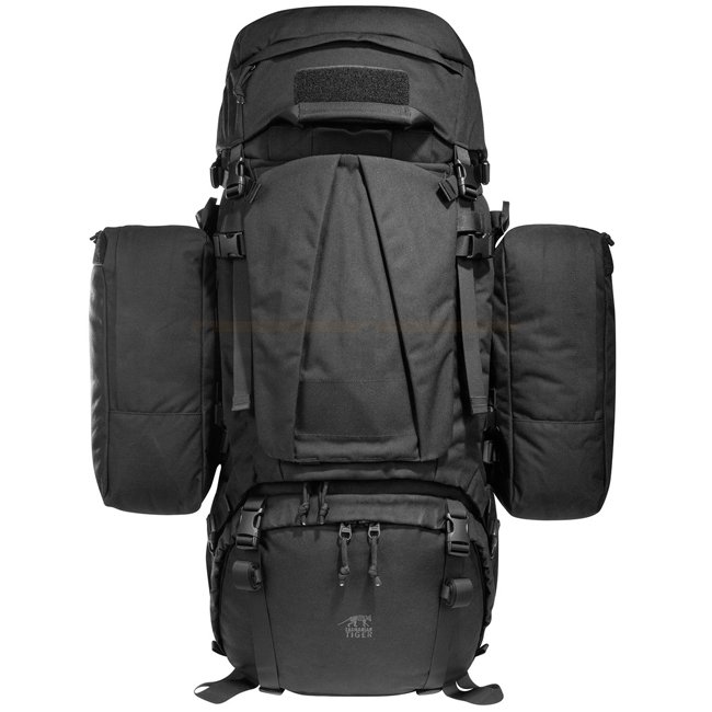 Sac robuste Tasmanian Tiger Mil OPS 80 & 24 - Noir avec système de portage ajustable V2 pour charges lourdes. Grand compartiment, poches latérales, système de laçage et porte-casque. Système MOLLE sur le devant et les côtés.