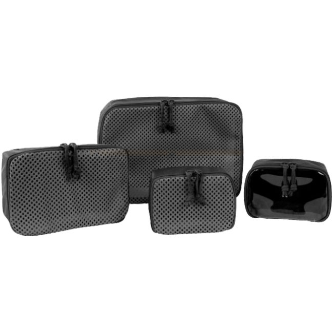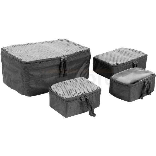 Restez organisé en déplacement avec le Tasmanian Tiger Modular Pouch Set VL - Noir, composé de 4 pochettes en maille de 3 tailles différentes. Se fixe facilement aux sacs avec une fermeture à crochet et boucle.