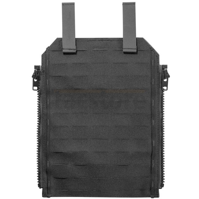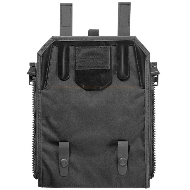 Panneau interchangeable conçu pour fixation sur porte-plaque via des fermetures éclair latérales. Peut être monté sur d'autres porte-plaques avec une longueur et largeur de fermeture éclair appropriées. Dispose d'une poche intégrée pour poche d'hydratatio
