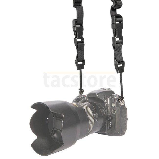Sangle de transport rembourrée avec diverses options de port et d'attache. Comprend un ajustement de longueur intégré, une sangle rembourrée pour le cou/l'épaule, fabriquée à partir de sangle de 25 mm. Extrémités interchangeables : crochet pour fusil, ban