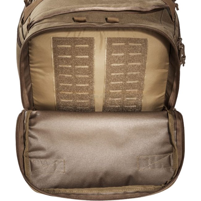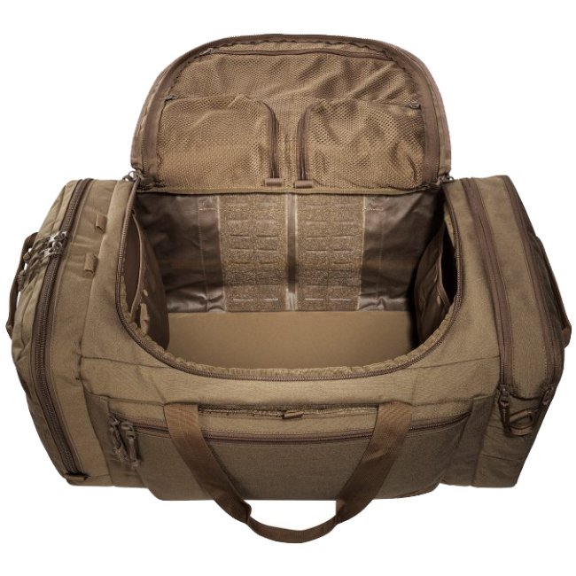 Sac d'officier Tasmanian Tiger - Coyote. Sac tactique universel avec un volume de 58 litres. Comprend des bretelles ergonomiques rembourrées, des fermetures éclair verrouillables et des poches latérales pour un accès facile. Fabriqué en matériau CORDURA 1