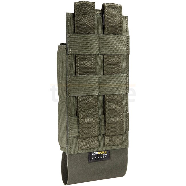 Pochette bas profil Tasmanian Tiger Tac Pouch 2 Radio MK2 en couleur olive pour SEM 52 S, avec un design facilitant le changement de batterie.