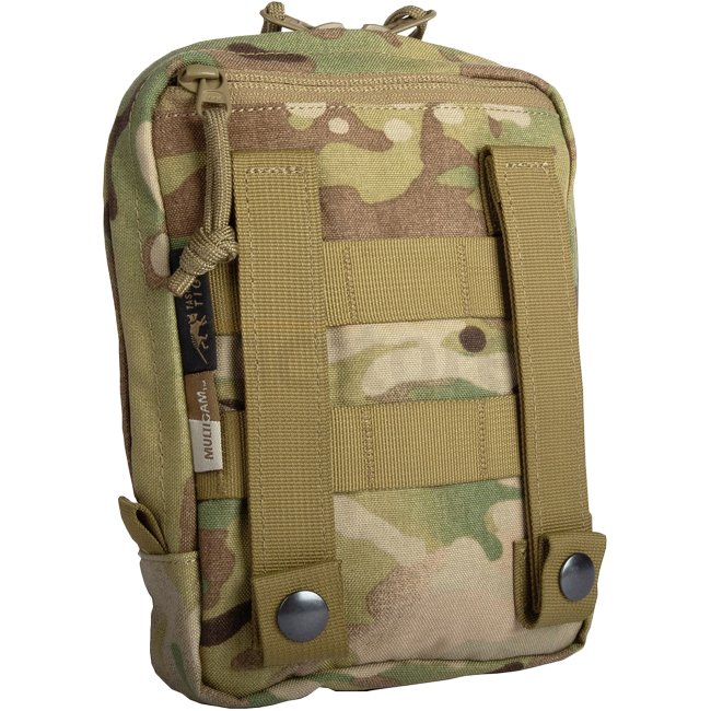 Tasmanian Tiger Tac Pouch 5 - Multicam : Petite pochette faisant partie de la gamme TAC POUCH, comportant une ouverture zippée extra large, un couvercle de protection contre la pluie, des bandes auto-agrippantes pour étiquette nominative, et un système de