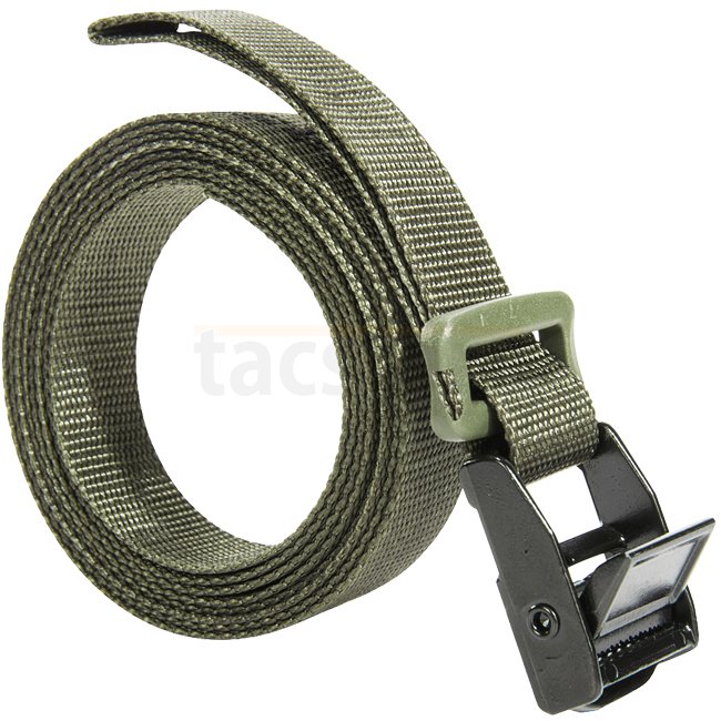 Sangle Tasmanian Tiger 1.5m - Olive - Sangle de paquetage pour minimiser le volume et sécuriser les bagages. Longueur ajustable. Matériau de sangle en polyester, dimensions 150 x 1.8 cm, poids 42g.