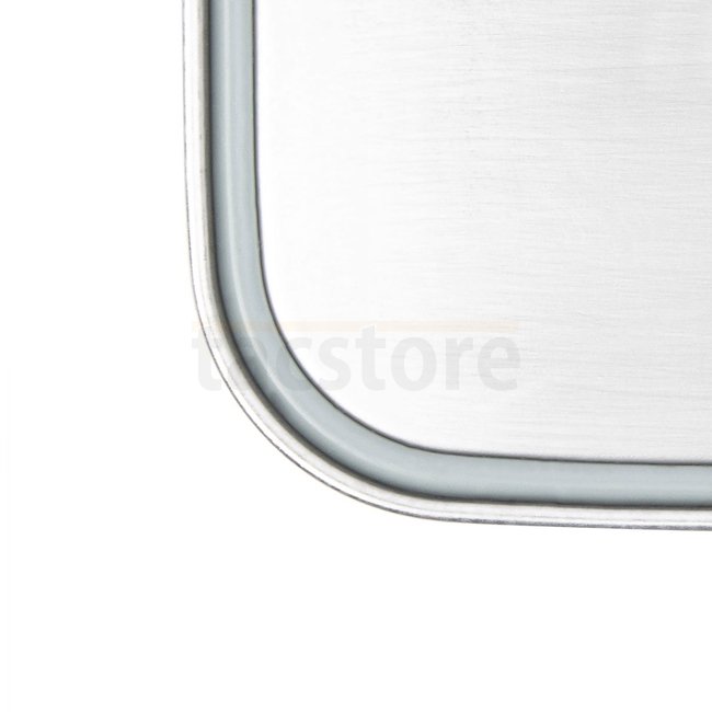Grande boîte à lunch en acier inoxydable avec couvercle verrouillable, sûre pour les aliments, durable et incassable. Dimensions : 19 x 14,4 x 6 cm.