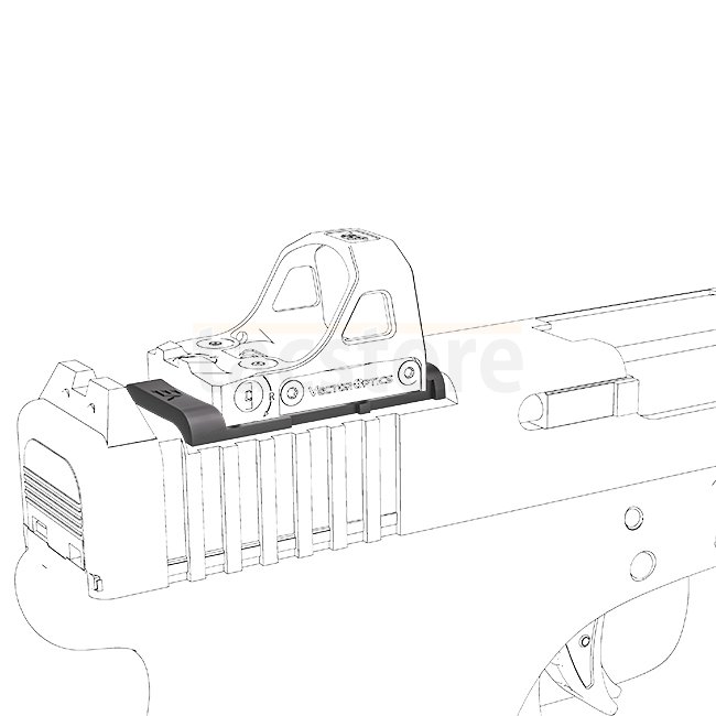 Cette plaque adaptatrice permet de monter des viseurs à empreinte MAG—compatibles avec RMS, RMSc, Shield et autres—sur des glissières GLOCK MOS. Fabriquée en acier #45 robuste avec finition noire mate, elle ajoute très peu de hauteur et conserve un alignement fiable. Longueur totale: 49 mm; largeur: 25.4 mm; hauteur au-dessus de la glissière: 6.3 mm. Livrée avec vis Torx M3×6 et M3×8. Poids: 18.5 g.