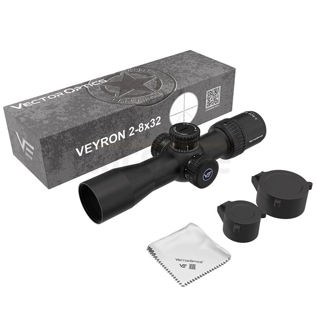 Cette lunette de visée compacte Vector Optics Veyron 2-8x32IR offre un grossissement de 2-8x, un objectif de 32mm, un champ de vision de 17-4m, un réticule MPR-V5, un ajustement de 1/10 MIL, un ajustement maximal d'élévation et de dérive de 23.5 MIL, un r